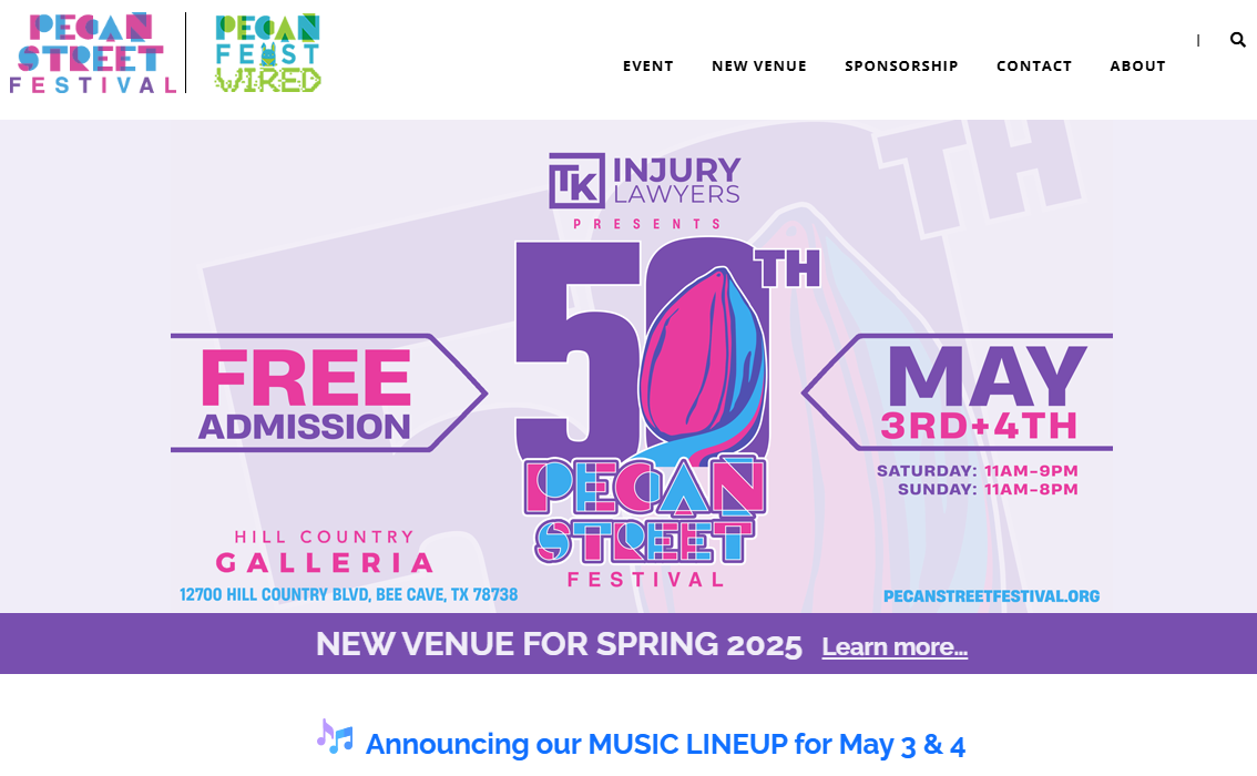 The Pecan Street Festival is one of the largest, and longest-running, arts/crafts and music festivals in the nation presented by The Pecan Street Association, a 501(c)4 nonprofit organization. The festival has been produced by Special Events Live since 2006.